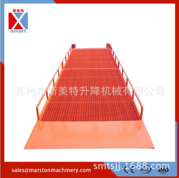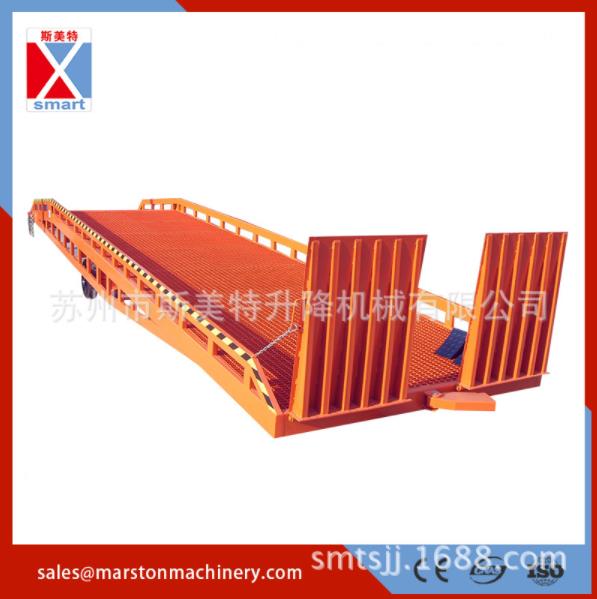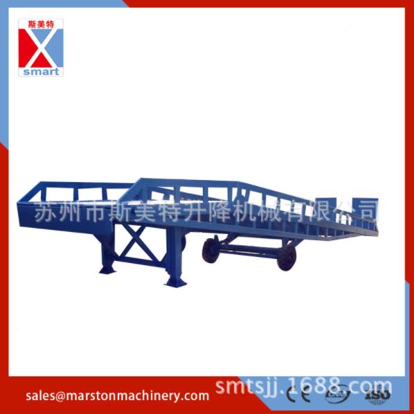 | 移動式登車橋應(yīng)用于無裝卸站臺或裝卸位置不固定以及裝卸場地狹小等場合,實現(xiàn)了貨物快速裝卸。通過它使叉車等搬運車輛直接進入貨車、集裝箱、列車車廂裝卸貨物,大大的提高了工效。登車橋采用手動液壓操縱,無需其它動力,能適用于各種裝卸場合;登車橋采用支腿支撐和網(wǎng)格狀鋼板結(jié)構(gòu),有更可靠的安全性能。登車橋有整體式,分體式,左右翻板可供選擇。 |