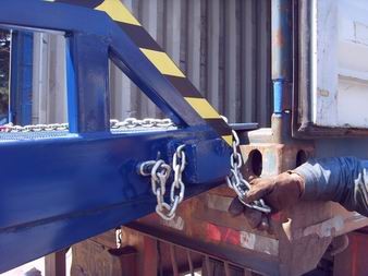 堅固耐用的移動輪 移動輪采用實心輪胎,不用充氣,堅固耐用,配合剎車墊,保證作業(yè)安全。 鉸鏈過渡 可調(diào)節(jié)長度的索鏈用于鉤住車輛,使登車橋與車輛即使發(fā)生移位時,始終緊密貼合。 高強度齒形防滑格刪板 網(wǎng)橋體上面鋪設(shè)一層齒形防滑網(wǎng)紋鋼板。網(wǎng)眼是扭曲和鏤空的,不僅提高了工作的可靠性,而且能防止油脂、污垢、雨水和冰雪的堆積。
